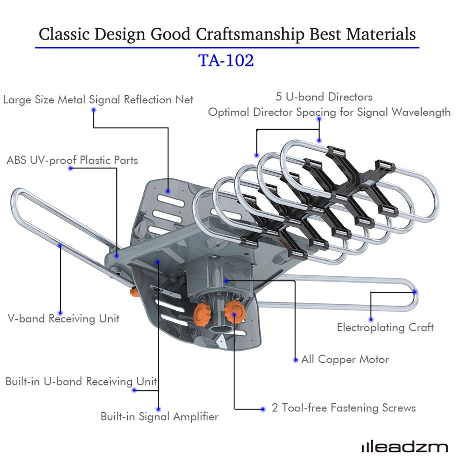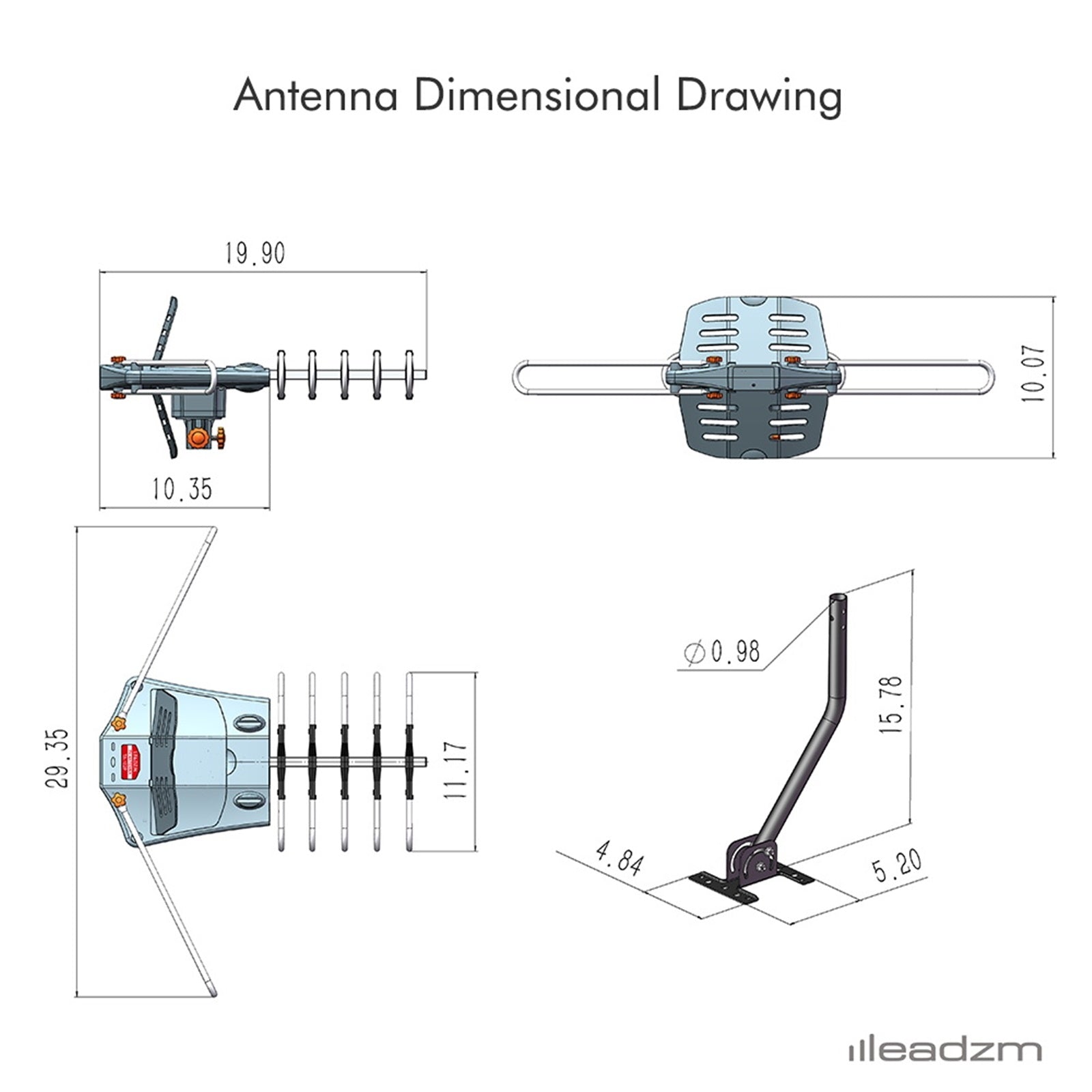 4. Typical Antenna Gain: VHF 28~32dB/UHF 32~36dB