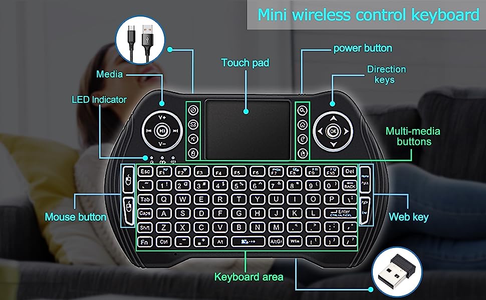 Upgrade your control experience with the EASYTONE Backlit Mini Wireless Keyboard Touchpad Mouse Combo Remote Control. Streamline your interactions, enhance your efficiency, and enjoy the convenience of a multi-functional remote that fits right in the palm of your hand.