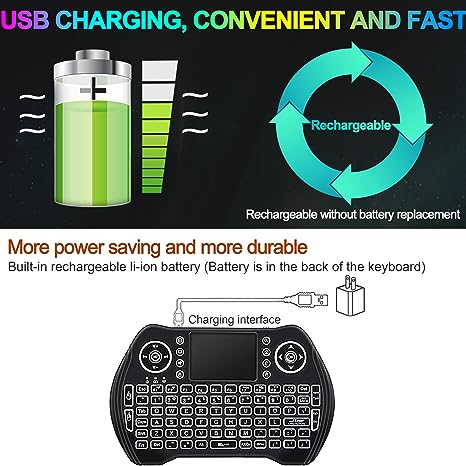 - EASYTONE Backlit Mini Wireless Keyboard Touchpad Mouse Combo Remote Control